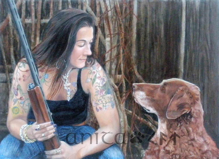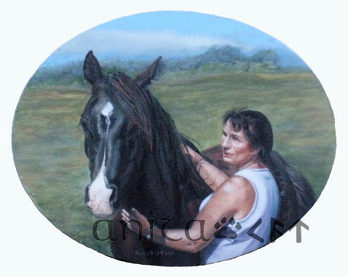 I love to do the non-formal portrait, especially if the person is interacting with an animal. There is a story there. The viewer can feel the emotion, and gets pulled into the piece.