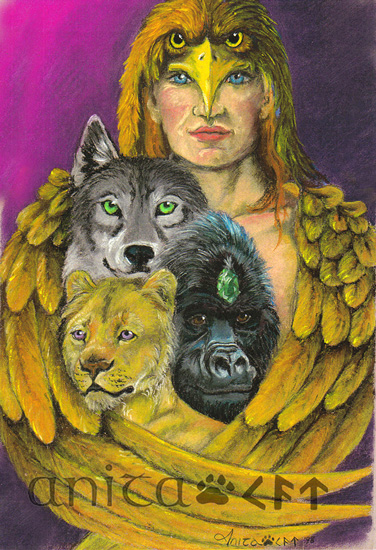 This is a different type of portrait. This is a portrait that speaks of the person’s power animals and the energies that surround them. This type of portrait requires me to journey to that person’s guiding spirit or angels and be guided as to how to create the portrait.
