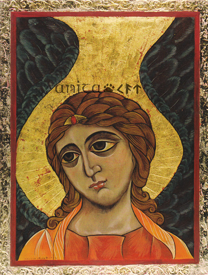 Inspired by 2nd-half, 12th-century original, Rumyantsevsky Museum, Leningrad Russian Museum, Moscow; Egg tempera, gold leaf, raised paste on wood panel